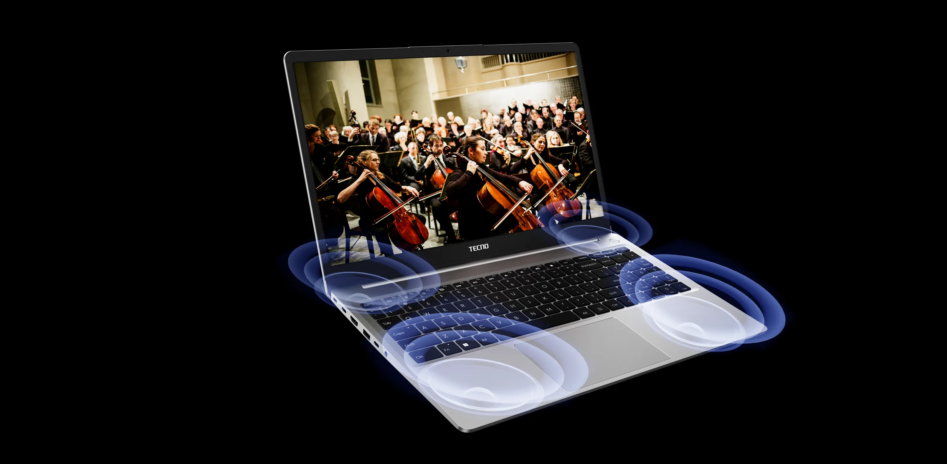 Tecno уделил внимание акустике устройства: динамики выдают чистый и объёмный звук, что делает просмотр фильмов и видеозвонки более комфортными. Качественная веб-камера и микрофоны подойдут для онлайн-учёбы и рабочих встреч.