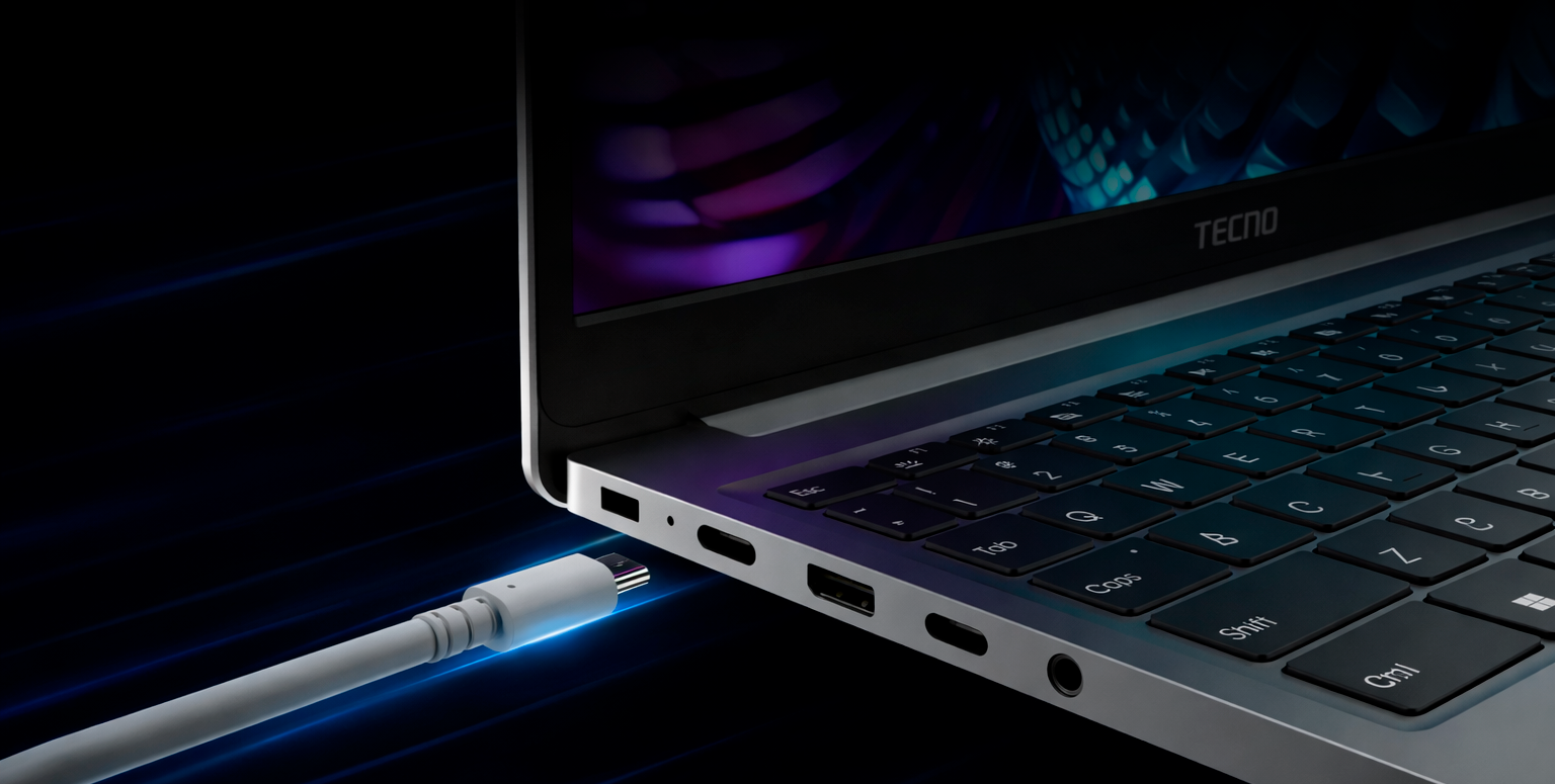 Tecno Megabook K16SFA поддерживает Wi-Fi 802.11ax и Bluetooth 5.4, обеспечивая современный уровень беспроводного подключения. Для периферии и внешних устройств предусмотрены два порта USB 3.x, два USB Type-C, HDMI и комбинированный аудиоразъем 3.5 мм. Это позволяет без проблем подключать монитор, накопители, аксессуары и другую технику.