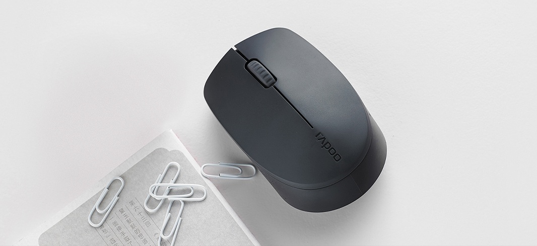 RAPOO M100 Silent выполнена в компактном корпусе из матового пластика без декоративных элементов и подсветки. Универсальная форма подходит как для правшей, так и для левшей, а небольшой вес 55 г делает мышь удобной для повседневной работы дома, в офисе или в дороге.