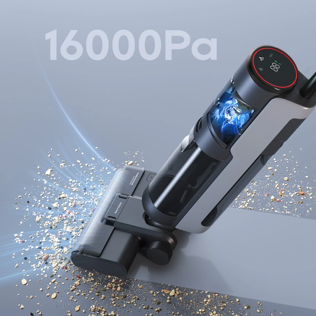 Удаляйте загрязнения, пыль, мусор, шерсть домашних животных, волосы, пролитые жидкости и глубоко въевшуюся грязь благодаря эффективной щетке и высокой мощности всасывания 16000 Па. Пылесос позволяет быстро и легко удалять различные сухие и влажные загрязнения: от просыпанных овсяных хлопьев до пролитого кофе. Благодаря регулировке мощности всасывания наш интеллектуальный пылесос эффективно убирает грязь и мусор, скапливающийся на ковровых и твердых напольных покрытиях.