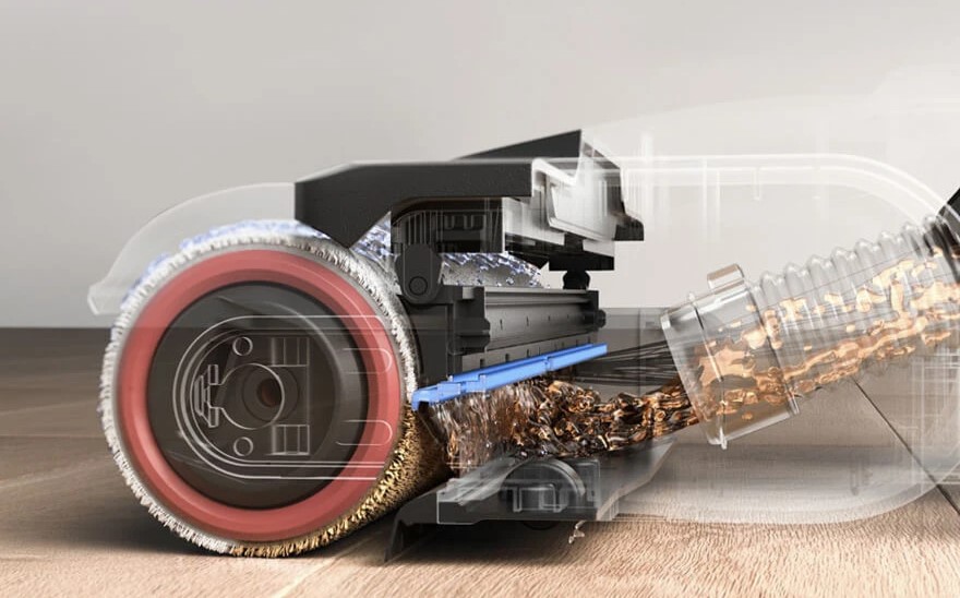 Пылесос H14 Dual оснащен специальным эластичным скребком, который плотно прижимается к щетке для удаления из нее грязной воды, мусора и спутавшихся волос, благодаря чему вам не придется чистить щетку вручную.