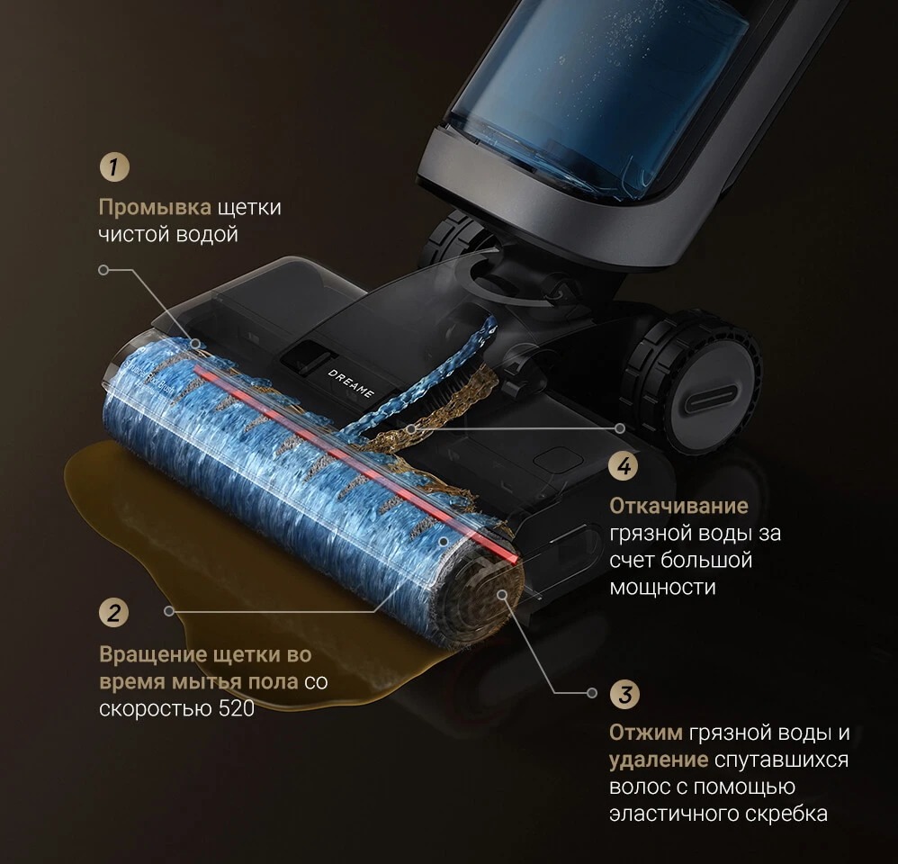 Наслаждайтесь комфортом и чистотой полов благодаря инновационной системе уборки с использованием чистой воды.