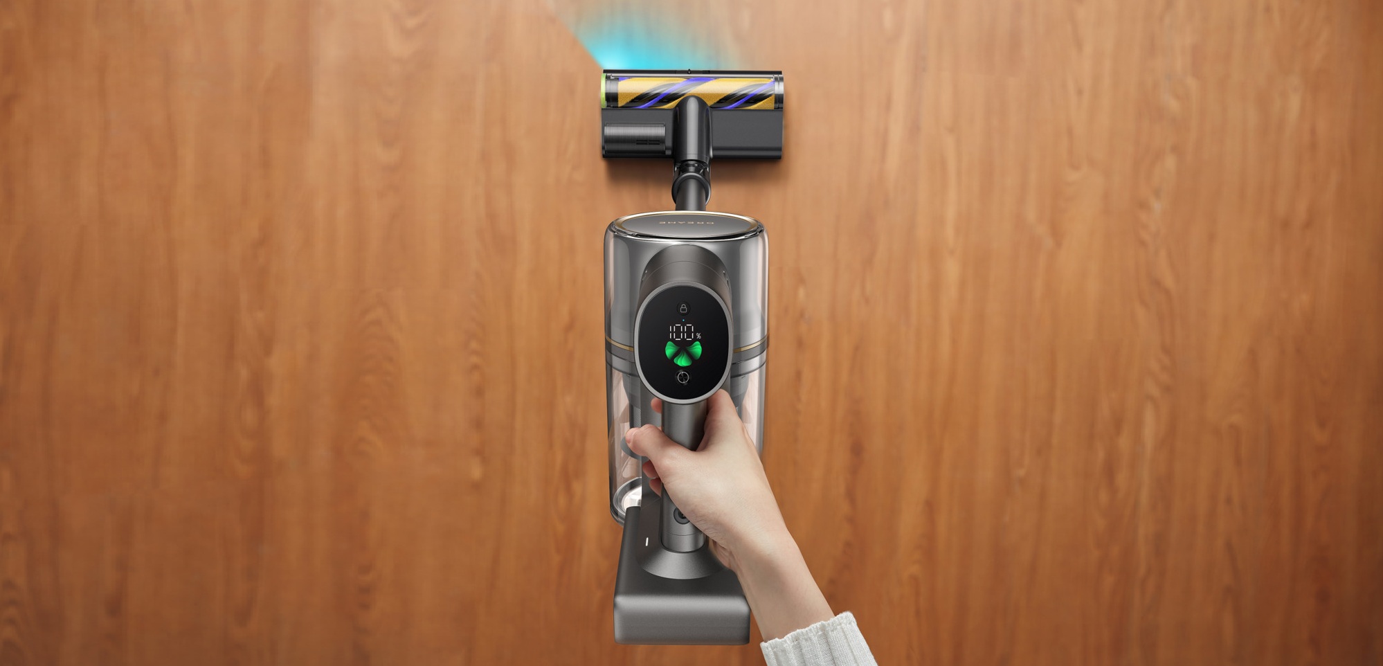 Dreame R20 Essential оснащён рядом продуманных функций, повышающих удобство использования. Подсветка зоны уборки позволяет отчётливо видеть пыль и загрязнения даже в тёмных углах и под мебелью, где они обычно остаются незамеченными. LED‑дисплей наглядно отображает текущийрежим работы и уровень заряда аккумулятора, помогая контролировать процесс уборки. Система интеллектуального обнаружения загрязнений автоматически оптимизирует мощность всасывания в зависимости от типа и степени загрязнения поверхности, обеспечивая эффективное использование энергии.