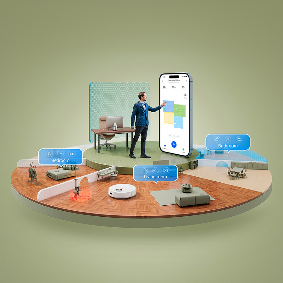 Удобное приложение Dreamehome делает индивидульную настройку уборки элементарной.