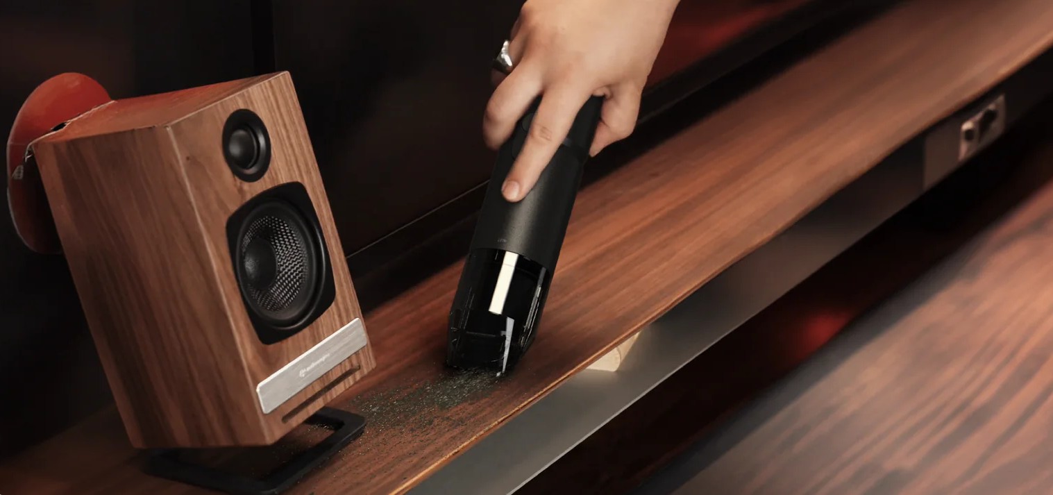 Внутри установлен бесщеточный BLDC-мотор мощностью 120 Вт. Он обеспечивает силу всасывания до 15 000 Па и поток воздуха до 500 л/мин. Этого хватает для очистки клавиатур, техники, салона автомобиля, труднодоступных щелей, а также для быстрой продувки поверхностей и работы в режиме воздуходувки. Доступны два режима работы — под разные задачи и уровень загрязнений.